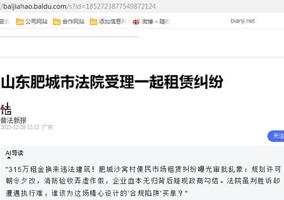 近日,一起涉及肥城市沙窝村便民市场综合体租赁合同的纠纷案件引发广泛关注。山东骏鑫商贸有限公司(下称“骏鑫公司”)在与金谷商业管理(山东)有限公司(下称“金谷公司”)签订高额租赁合同后,发现租赁物业存在规划违法、消防验收造假等一系列问题,导致合同无法履行,企业前期投入资金难以追回。更令人深思的是,在此过程中,多个行政审批与监管行为屡次出现“先许可、后撤销”的异常现象,引发公众对背后是否存在政商勾结、利益输送的质疑。